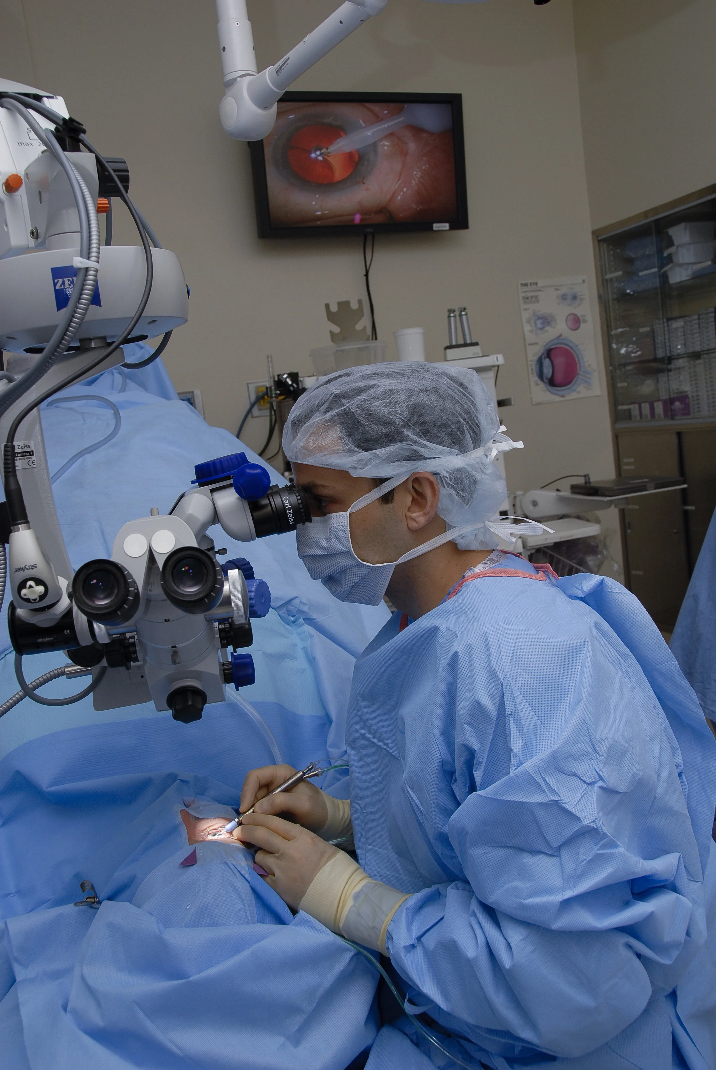 During the surgery, the doctor removes the cloudy natural lens from the eye while the patient is under monitored anesthesia care provided by an anesthesiologist.
